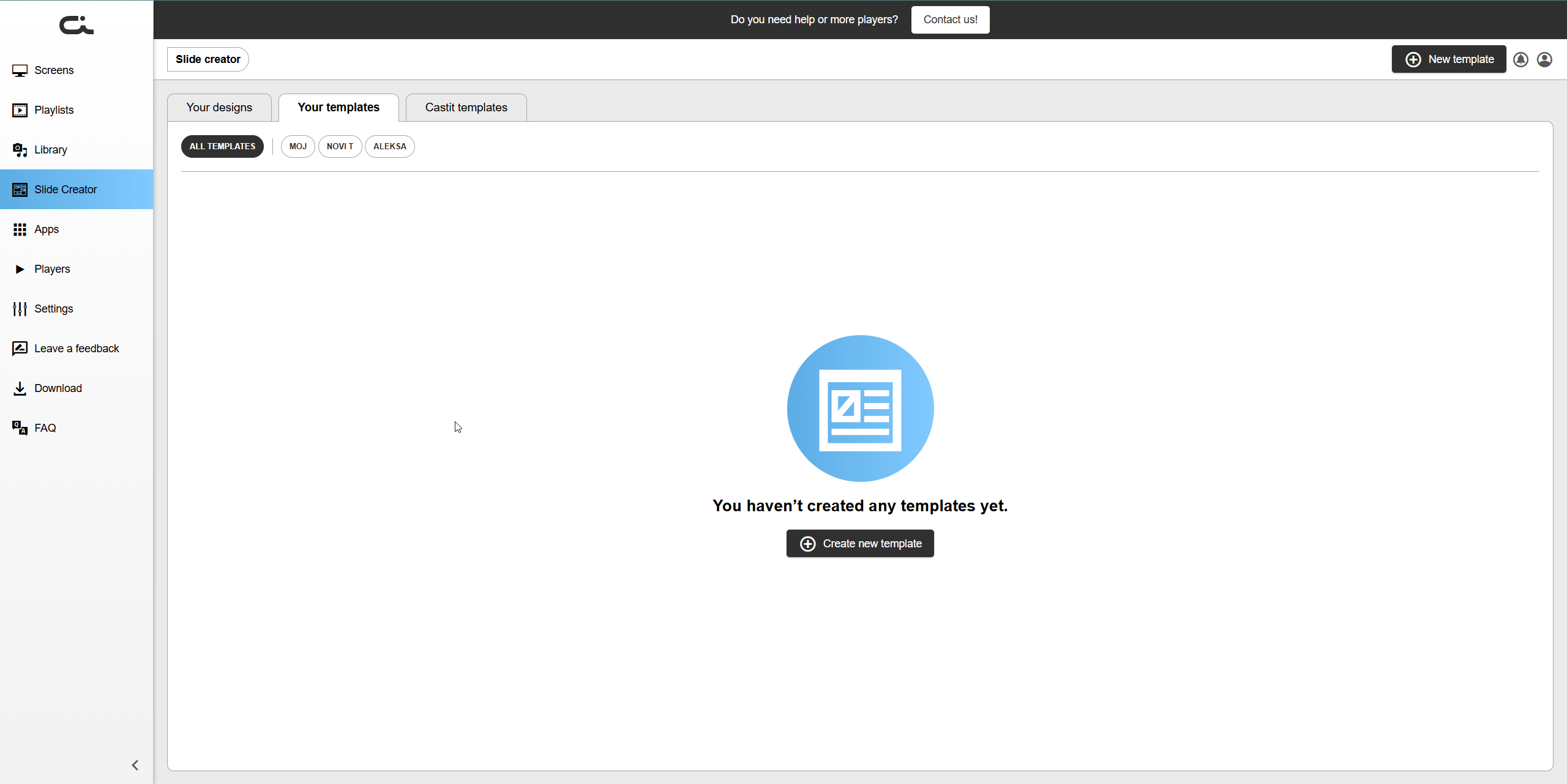 - Click the Your templates or Castit templates tab