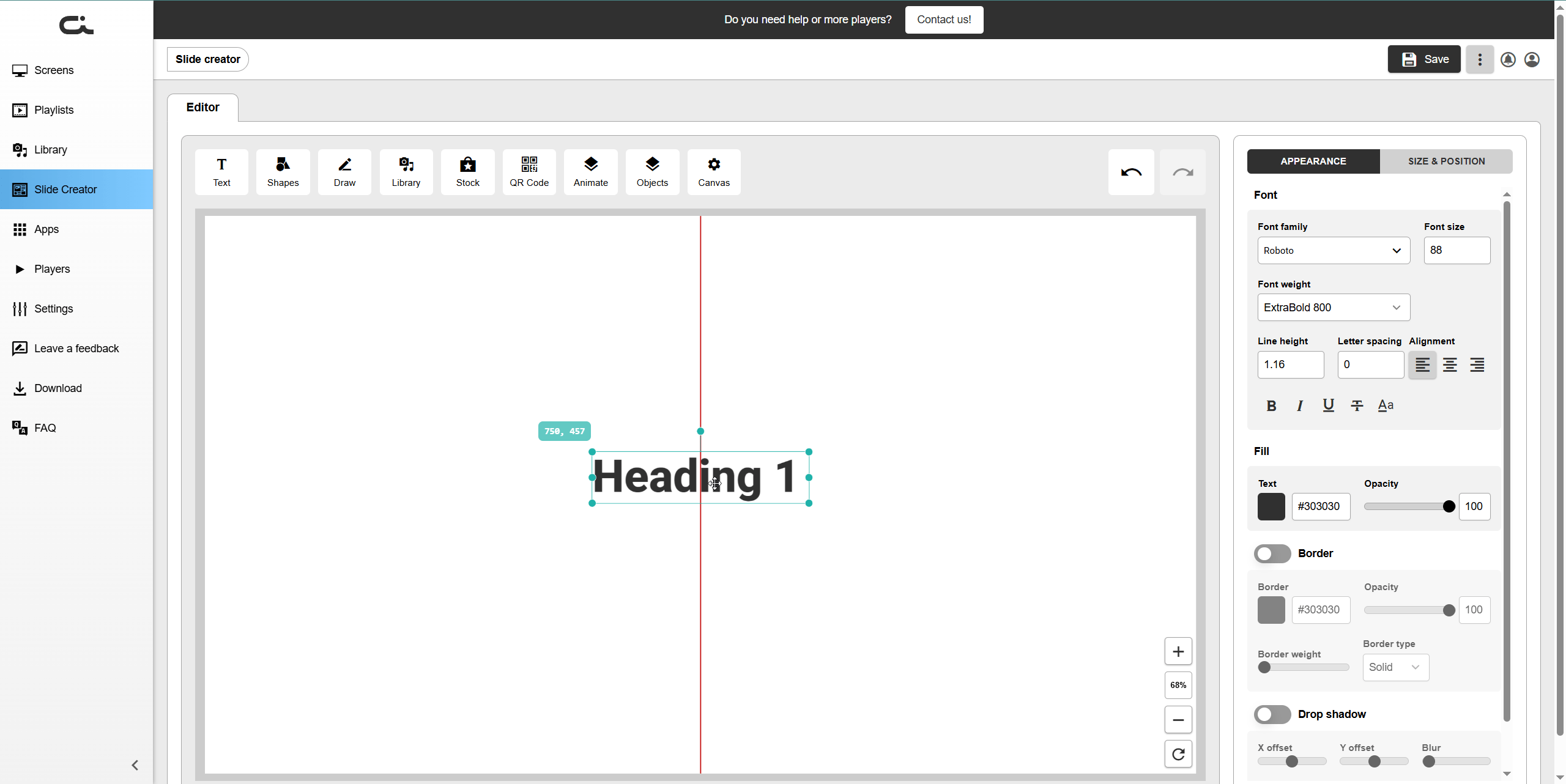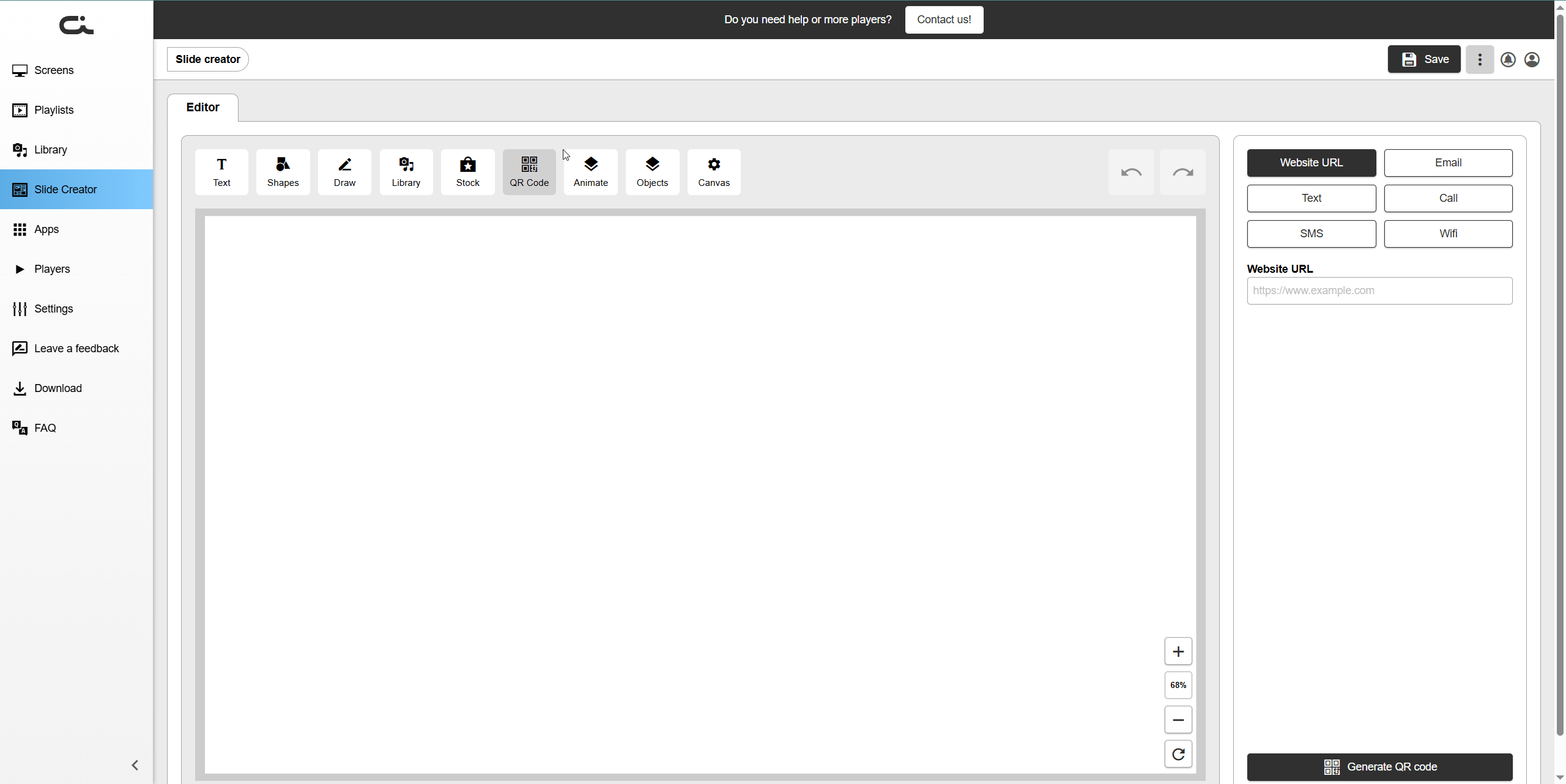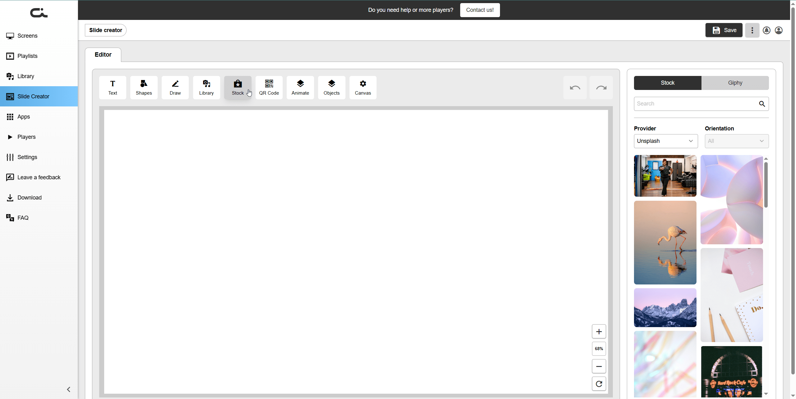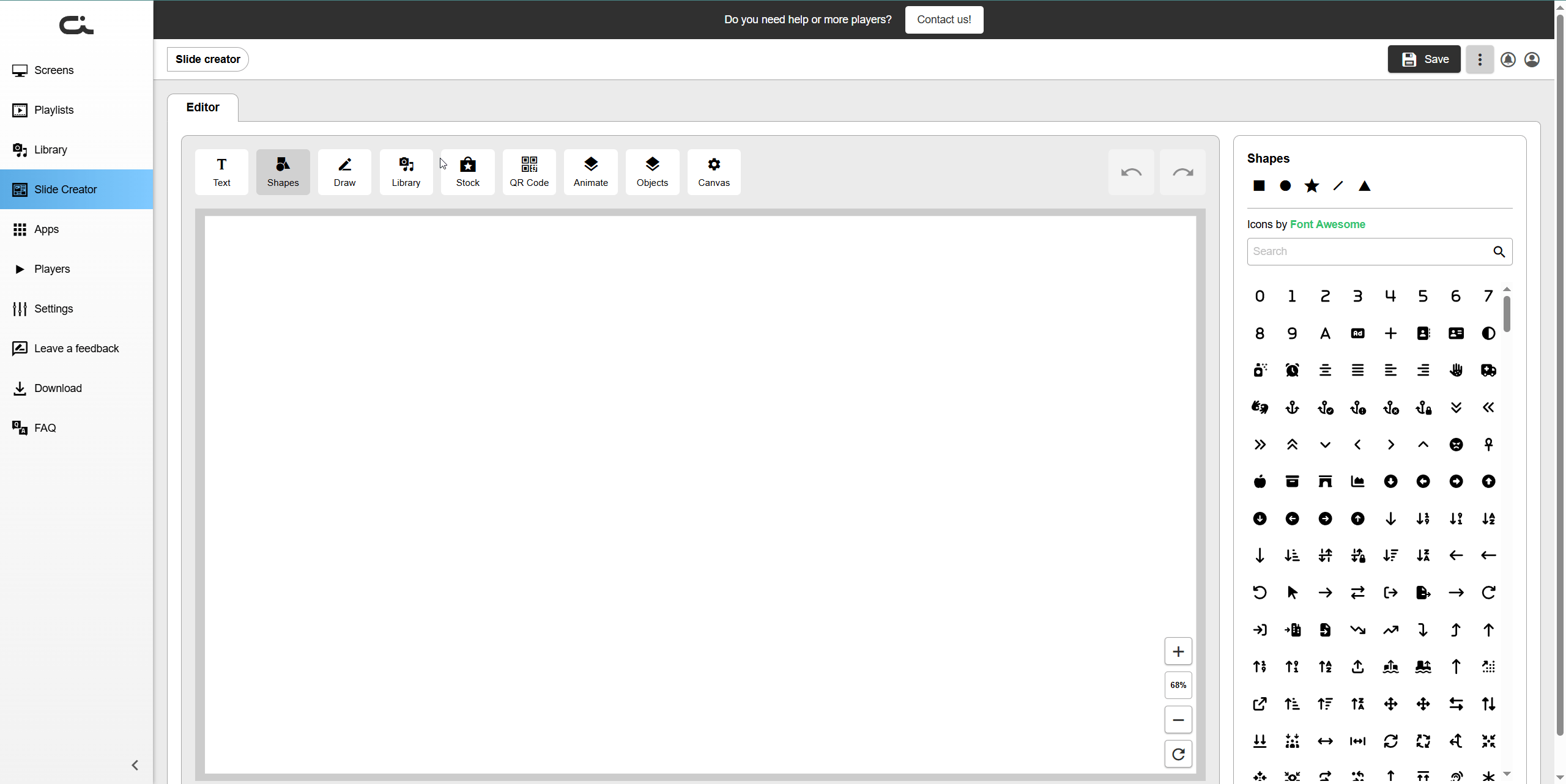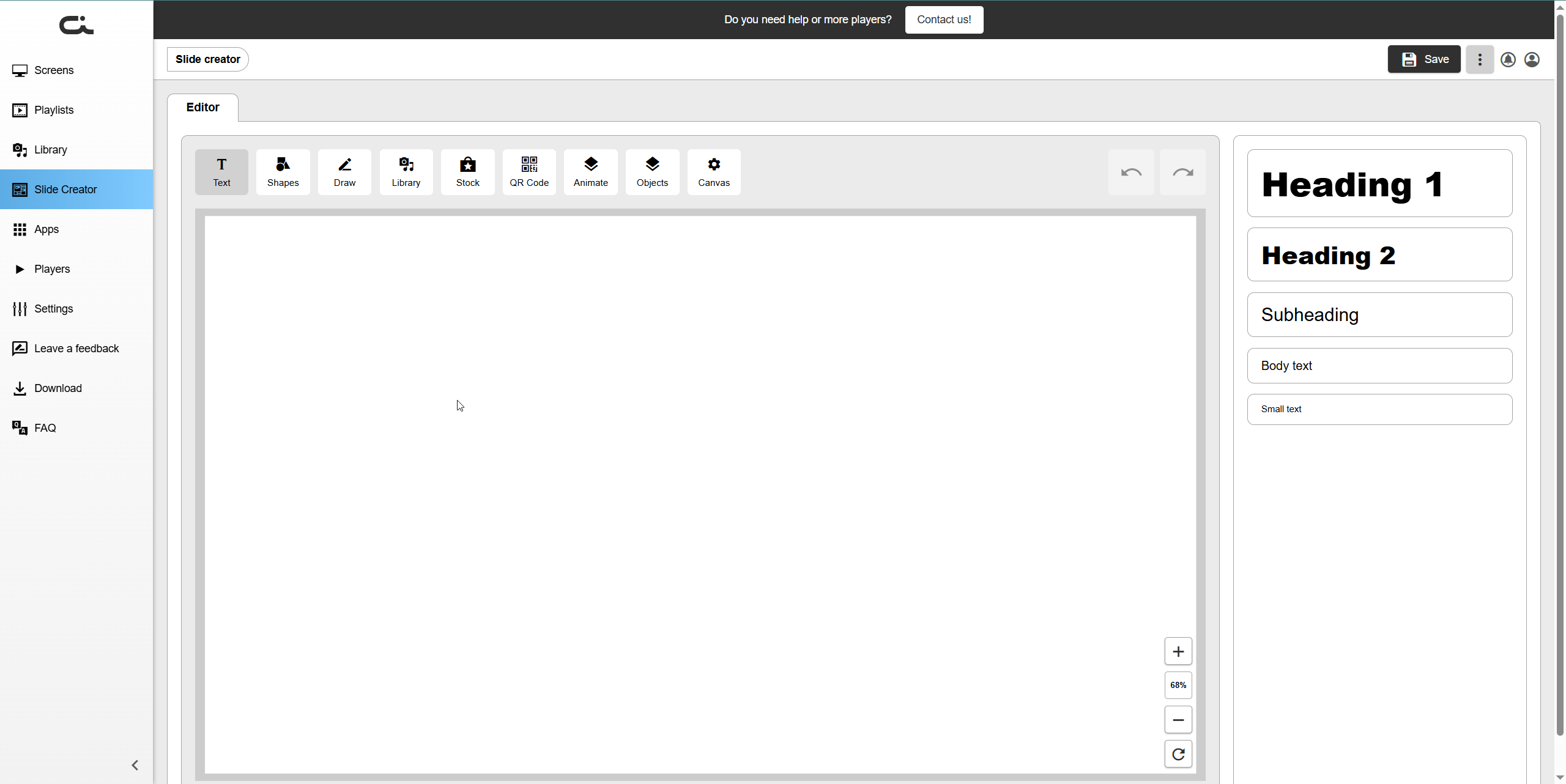 The Slide Creator is a powerful built-in design tool that allows you to create custom slides for your digital signage displays without needing external design software.